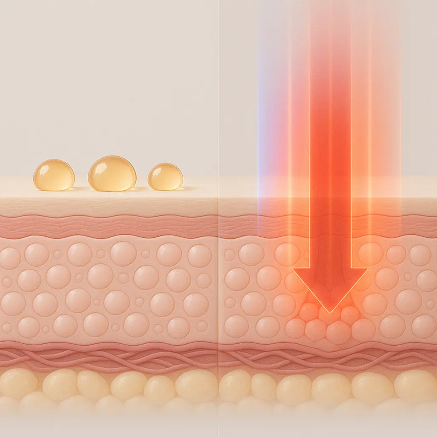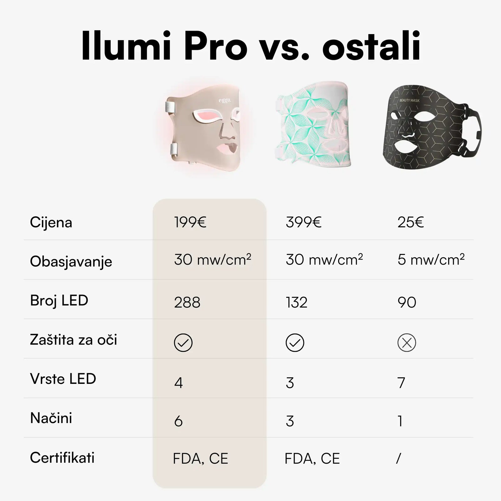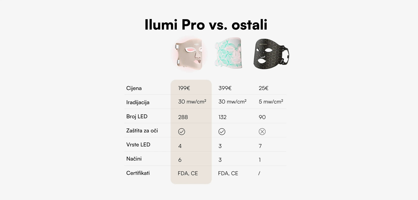 Maska Ilumi LED potiče obnovu kože zahvaljujući preciznim valnim duljinama crvenog, plavog i infracrvenog svjetla, koje su klinički dokazano učinkovite. Crveno svjetlo potiče stvaranje kolagena i smanjuje bore, plavo uništava bakterije koje uzrokuju akne, a infracrveno podupire regeneraciju dubljih slojeva kože i poboljšava njezinu elastičnost. Svjetlosna energija apsorbira se u stanice kože i potiče aktivnost ispod epiderme – bez zagrijavanja ili iritacije. Redovitom upotrebom koža postaje glađa, čišća i vidljivo zdravija.