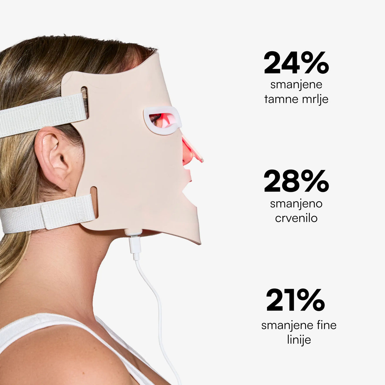 Crveno svjetlo (635 nm) pomaže u smanjenju finih linija i borica, crvenila i tamnih mrlja.