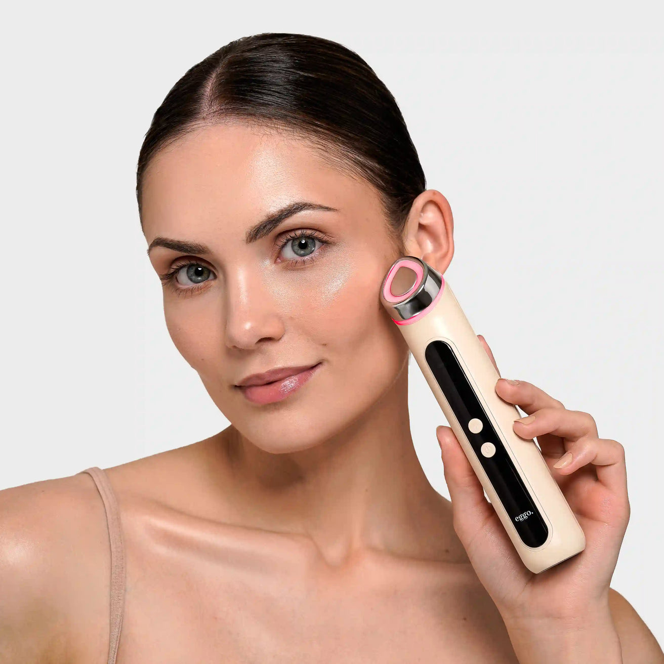 Visokonaponski impulsi stvaraju mikrootvore na površini kože, što poboljšava apsorpciju aktivnih sastojaka iz kozmetičkih proizvoda. Narančasto LED svjetlo doprinosi većem sjaju kože.