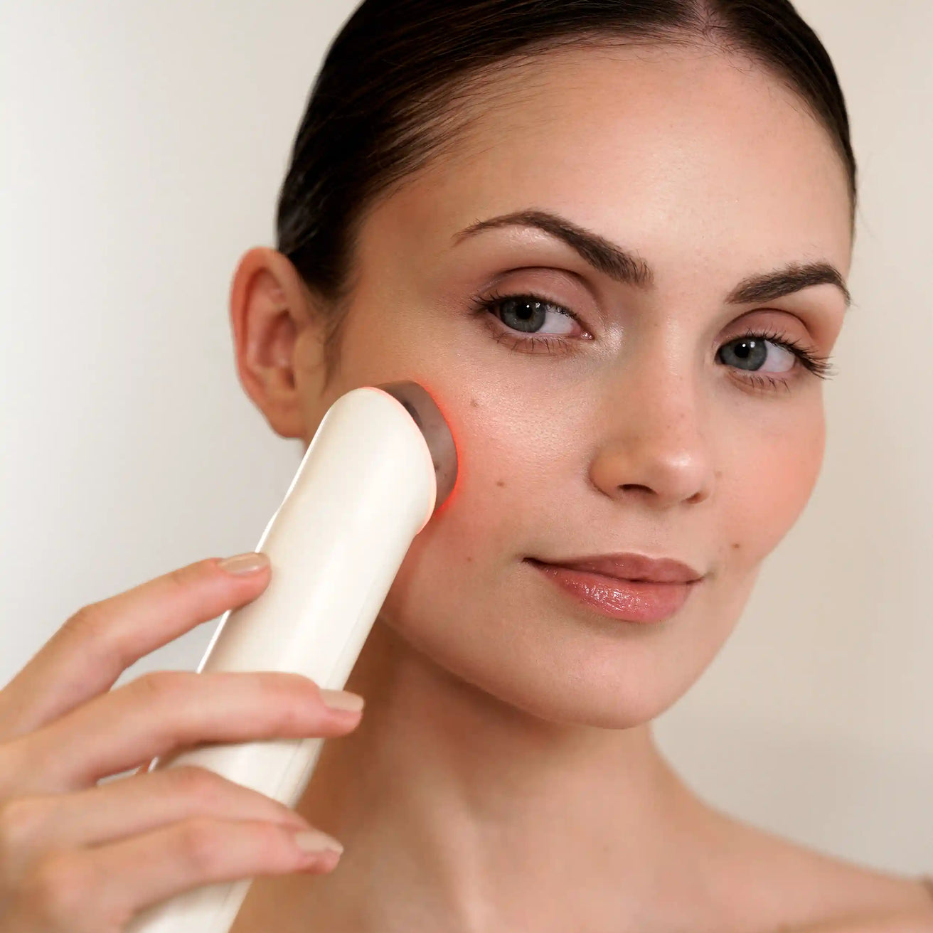 Srednjofrekventne struje stežu i toniziraju mišiće lica, stvarajući učinak liftinga. Ciljano djeluje na opuštena područja (čeljust, obrazi) za poboljšanje elastičnosti i napetosti lica. Crveno LED svjetlo potiče cirkulaciju i stvaranje kolagena te doprinosi usporavanju starenja kože.